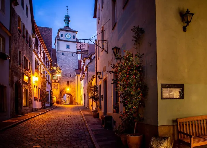 Das 2-Sterne-Hotel Gaestehaus Am Weissen Turm Rothenburg ob der Tauber liegt in circa 15 Gehminuten Entfernung von der St. Peter und Paul Kirche Detwang und verfügt über ein Restaurant.